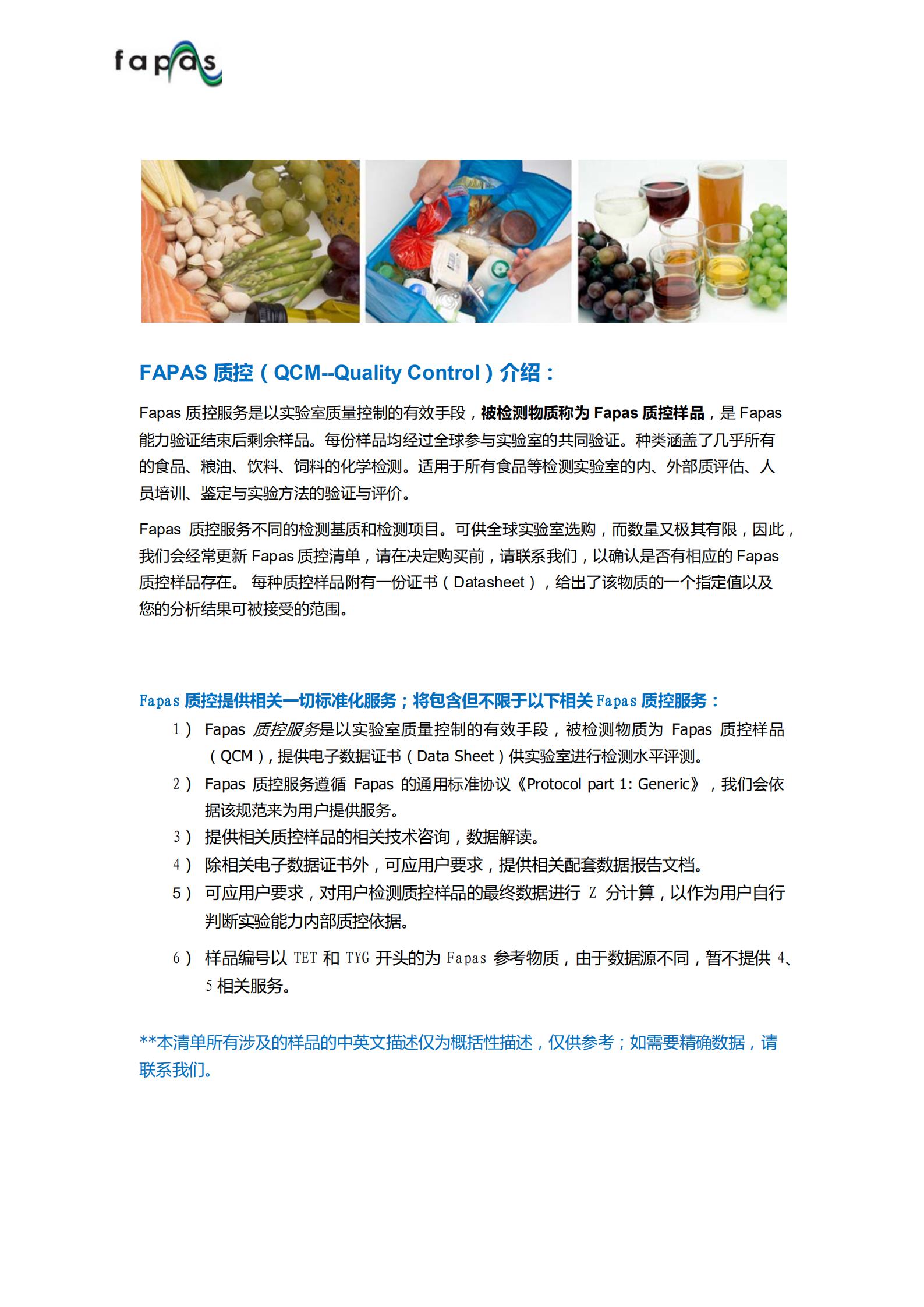 Fapas計(jì)劃包括食品、飼料和飲料的理化檢測(cè)。