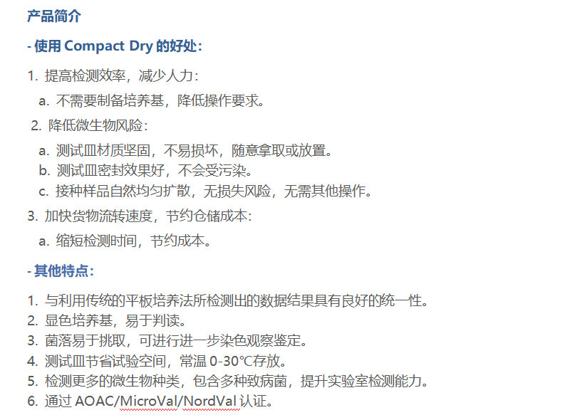 Compact Dry 微生物快速測試皿