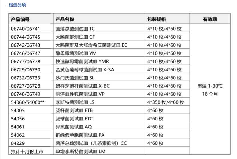 GB 4789.2-2016 菌落總數(shù)檢測用產(chǎn)品列表