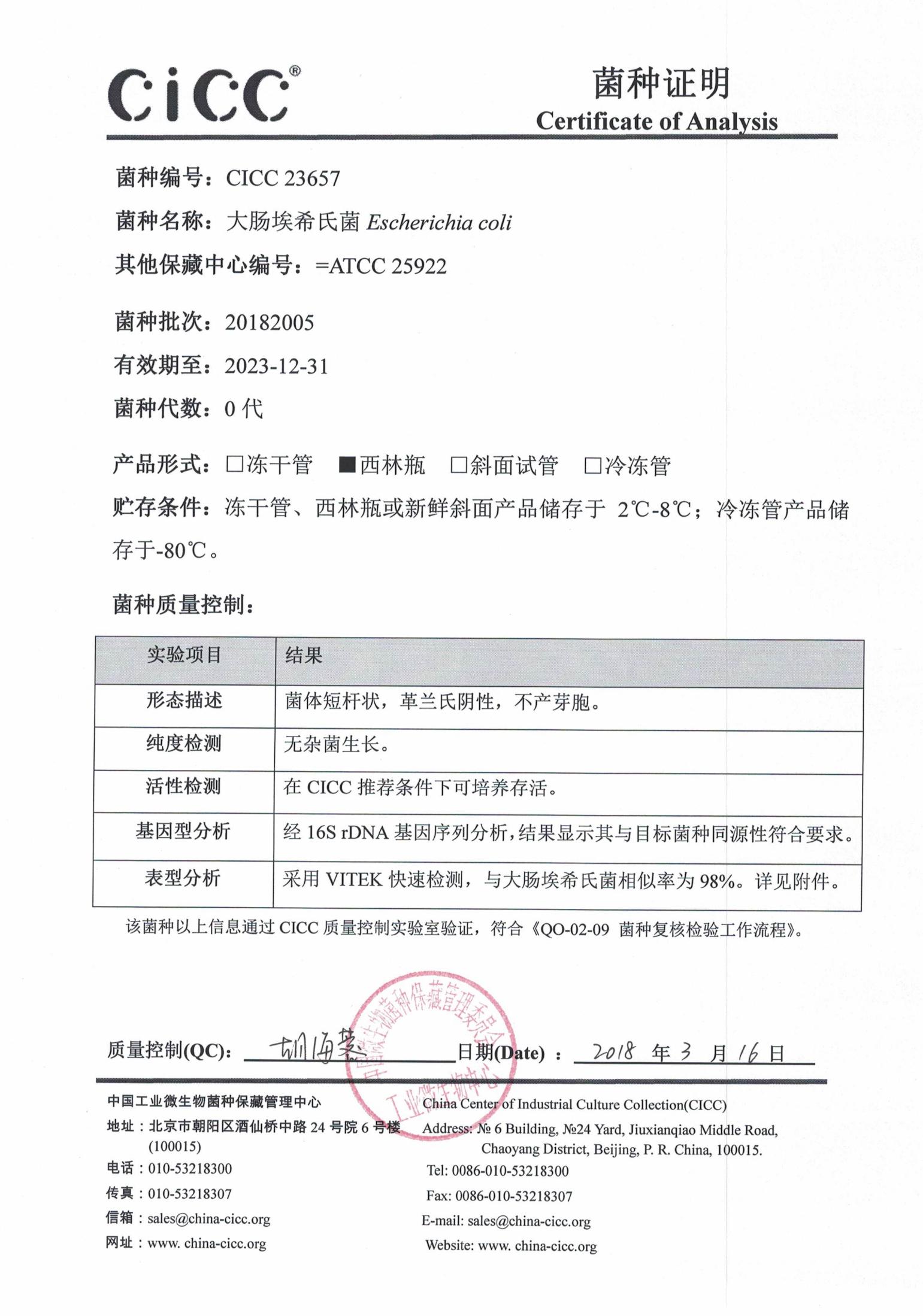 大腸埃希氏菌(陰性對(duì)照)Escherichia coli |