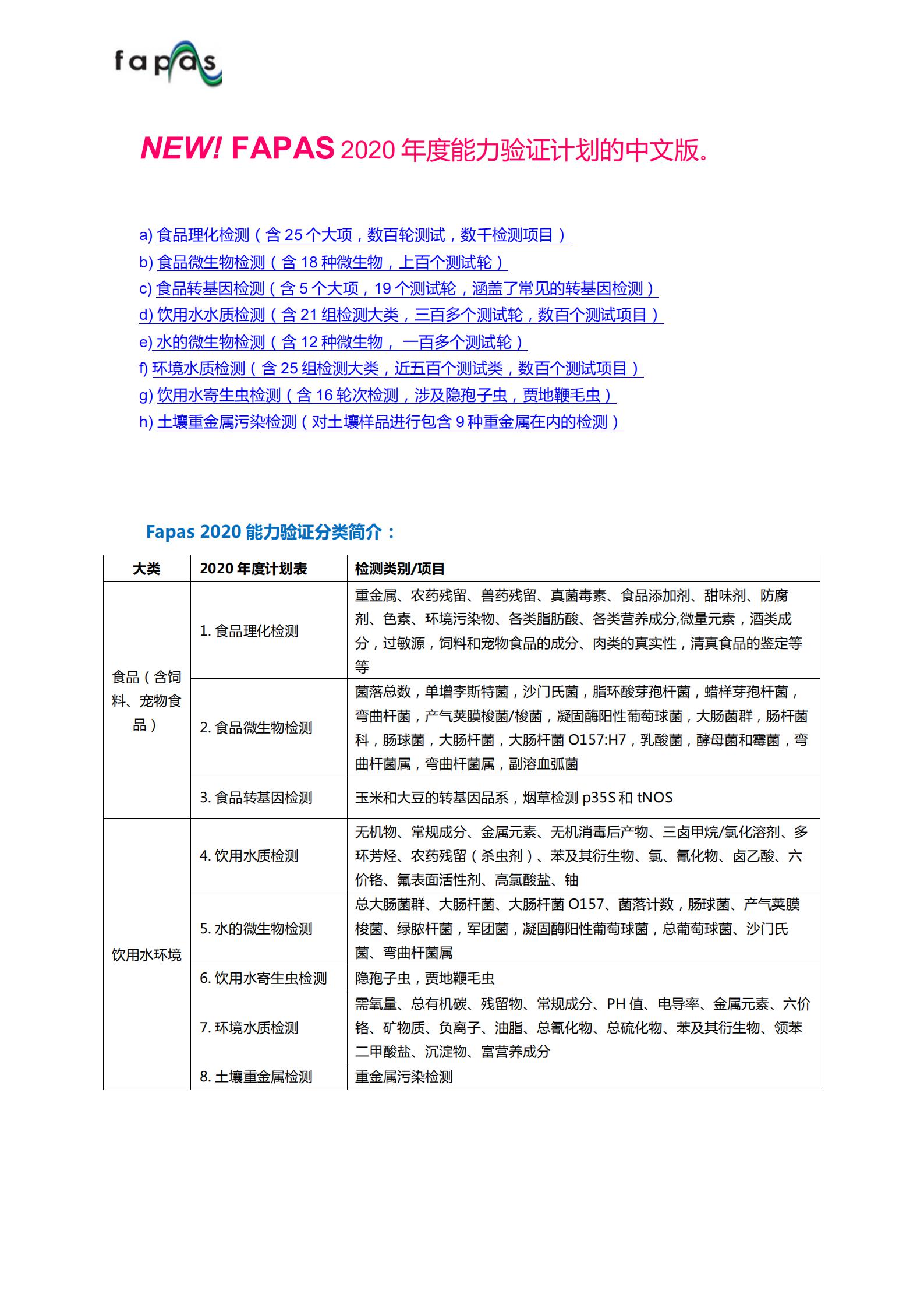 Fapas計(jì)劃包括食品、飼料和飲料的理化檢測(cè)。